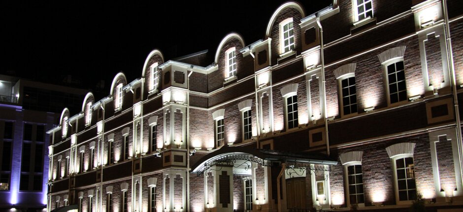 Линейный светодиодный светильник серии IntiLINEАкцентное и заливающее освещение – это два основных приема фасадной подсветки, без которых не обходится, пожалуй, ни один проект архитектурного освещения. Обычно для создания данных видов подсветки используются разные типы светильников, однако в линейке продукции IntiLED есть универсальное изделие, применяемое и для акцентного, и для заливающего освещения. Этим изделием является светодиодный светильник серии IntiLINE, многофункциональный благодаря широкому диапазону длин (от 30 до 160 см). В качестве примеров применения данного светодиодного прожектора можно привести проект бизнес-центра в Туле, в котором короткие тридцатисантиметровые светильники IntiLINE создают акцентное освещение, выделяя декоративные элементы фасада, а также проект клуба «Метро», в котором длинные метровые прожекторы IntiLINE создают световую «заливку» фасада. Светильник оснащен универсальными кронштейнами, что облегчает монтаж и юстировку изделия на объекте. Кроме того, в зависимости от проекта, кронштейны могут крепиться к корпусу светильника, либо к боковым заглушкам. Корпус линейного светодиодного светильника изготовлен из экструдированного алюминиевого профиля и покрыт порошковой эмалью, есть возможность окраски изделия в любой цвет по палитре RAL для лучшей маскировки на фасаде здания. Световой поток конкретной модели светодиодного светильника IntiLINE определяется его длиной и количеством используемых светодиодов и составляет от 500 до 5600 лм. Диапазон рабочих температур начинается от -40 и заканчивается +45°С, что в сочетании со степенью защиты IP 65 позволяет использовать светильник IntiLINE в неблагоприятных погодных условиях в различных климатических зонах. Широчайший модельный ряд предлагаемых линейных светодиодных светильников расширяет возможности при создании сложных проектов архитектурного освещения. Линейный светильник IntiLINE может использоваться не только в статической архитектурной подсветке, но и в создании свето- и цветодинамических фасадов, благодаря возможности посекционного управления. Помимо прочего, линейный светодиодный светильник серии IntiLINE имеет длительный срок службы (не менее 50 000 часов) и трехлетнюю гарантию. Технические характеристики: